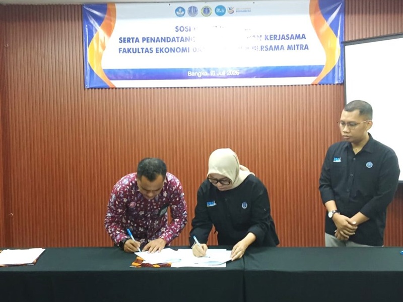 Bangka, 15 Juli 2025 — Fakultas Ekonomi dan Bisnis Universitas Bangka Belitung (FEB UBB) dan Fakultas Ilmu Sosial dan Bisnis Universitas Muhammadiyah Bangka Belitung (FISB Unmuh Babel) secara resmi menjalin kerja sama melalui penandatanganan Memorandum of Agreement (MoA) dalam rangka penguatan kolaborasi akademik dan pengembangan Tri Dharma Perguruan Tinggi di kawasan Bangka Belitung.